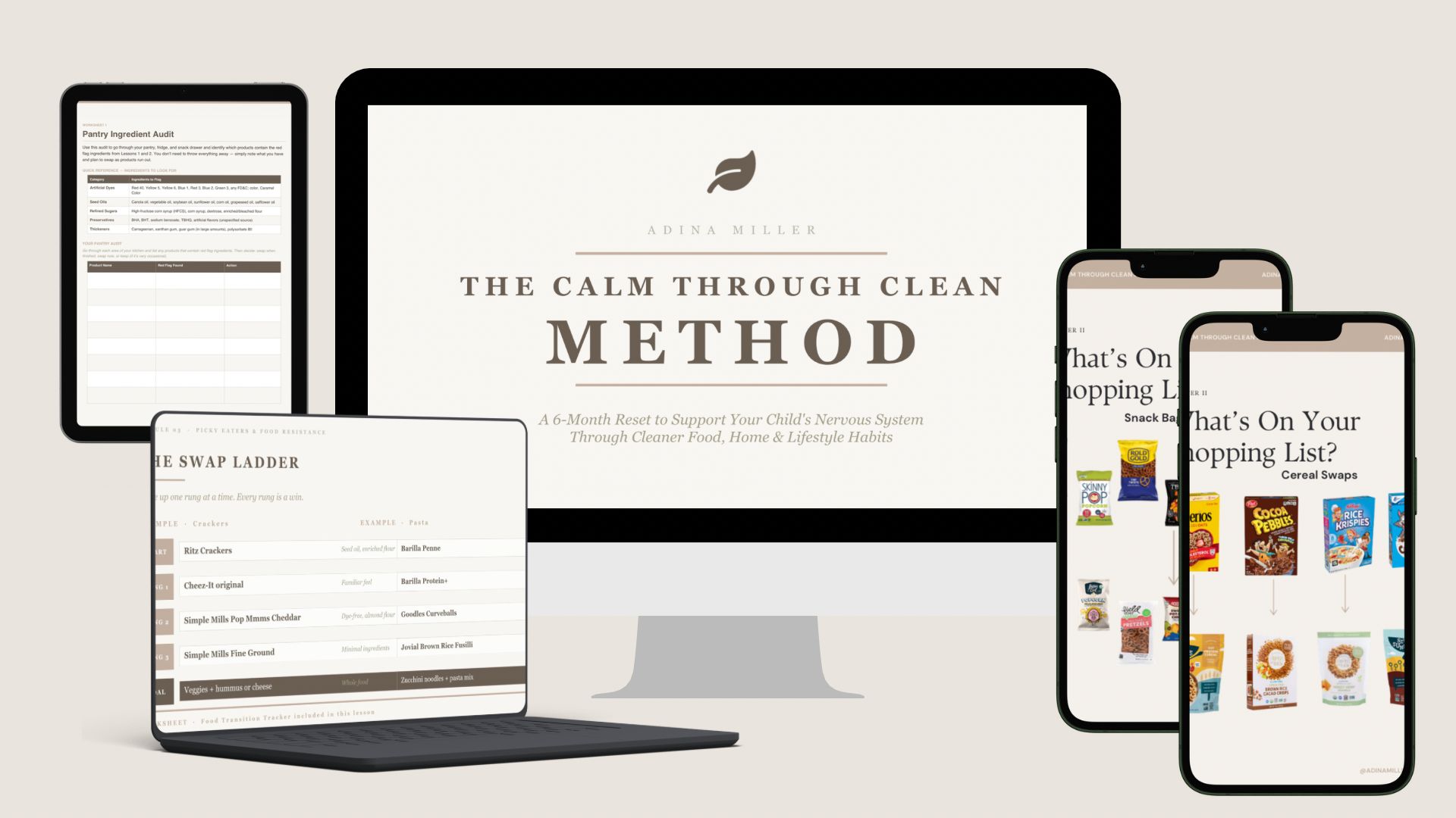 The Calm Through Clean Method - the complete six-step program walking you through food, home environment, and daily rhythm in a logical order that builds on itself.